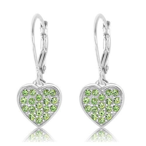 This beautiful heart is a classic yet most striking design. Swarovski crystal stones shimmer brightly, with a beautiful radiant shine sparkling from the heart. The earring is a leverback, a popular hanging style for girls.